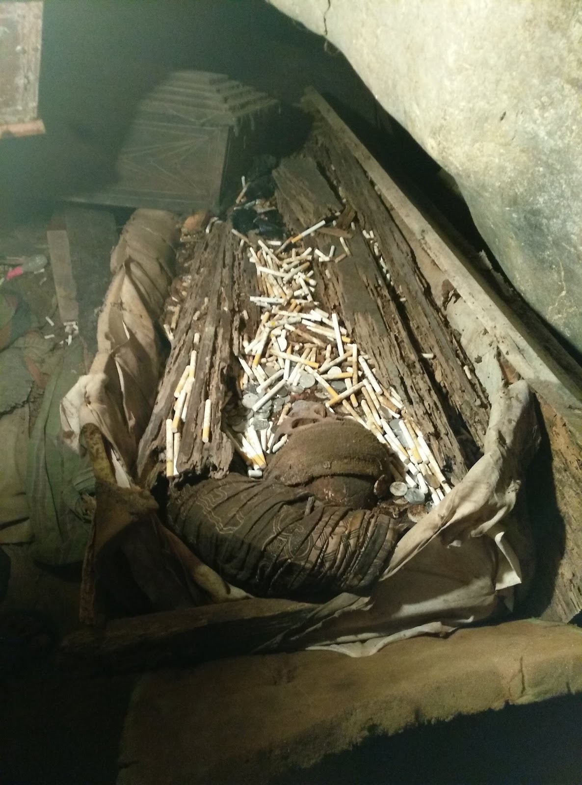 begitu memasuki gua yang gelap dan lembab itu, tengkorak dan tulang belulang